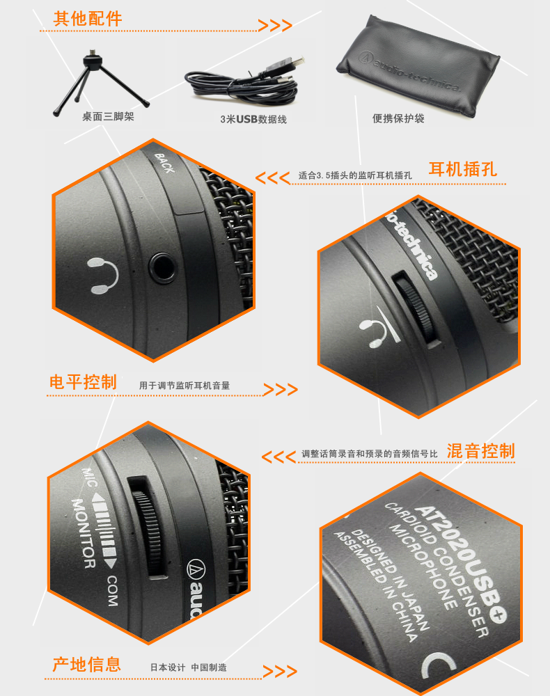 商品名称:Audio Technica/铁三角 AT2020USB+ 心形指向性电脑电容麦克风