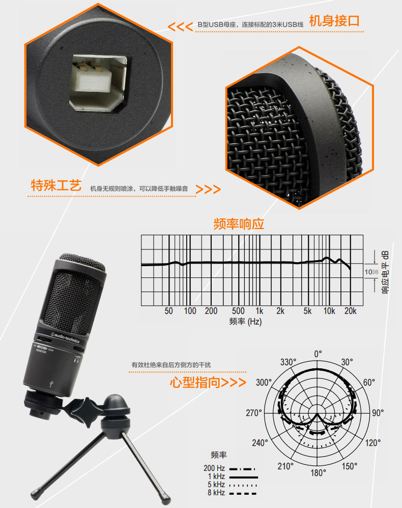 产品名称:Audio Technica/铁三角 AT2020USB