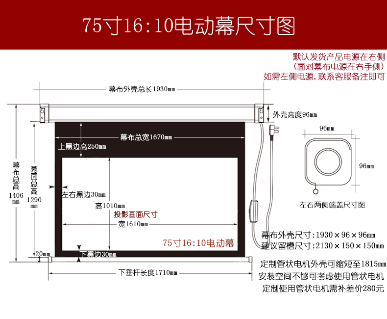 75寸16:10电动幕+遥控