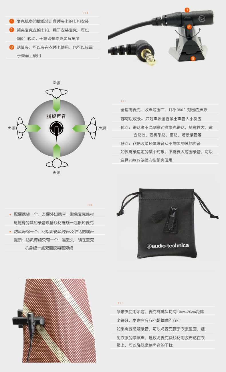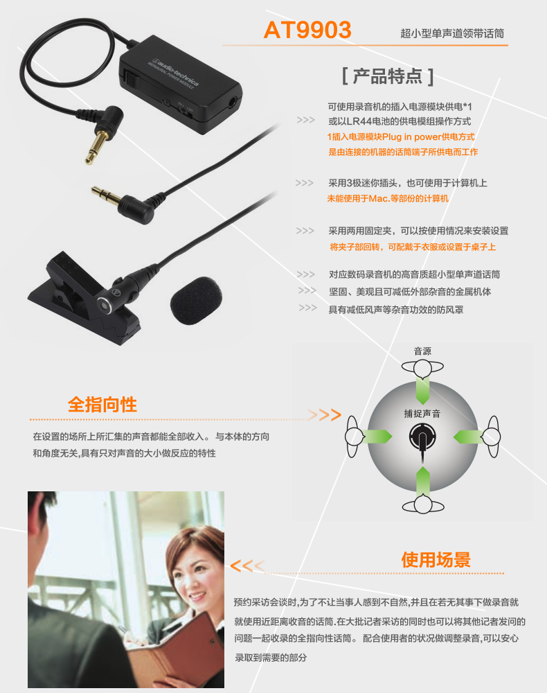 商品名称:Audio Technica/铁三角 AT9903电容式全指向超小型采访领夹麦克风
