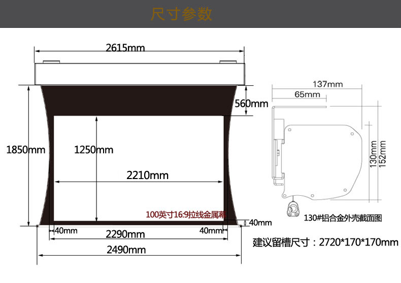 型号:电动幕(100寸/金属幕)