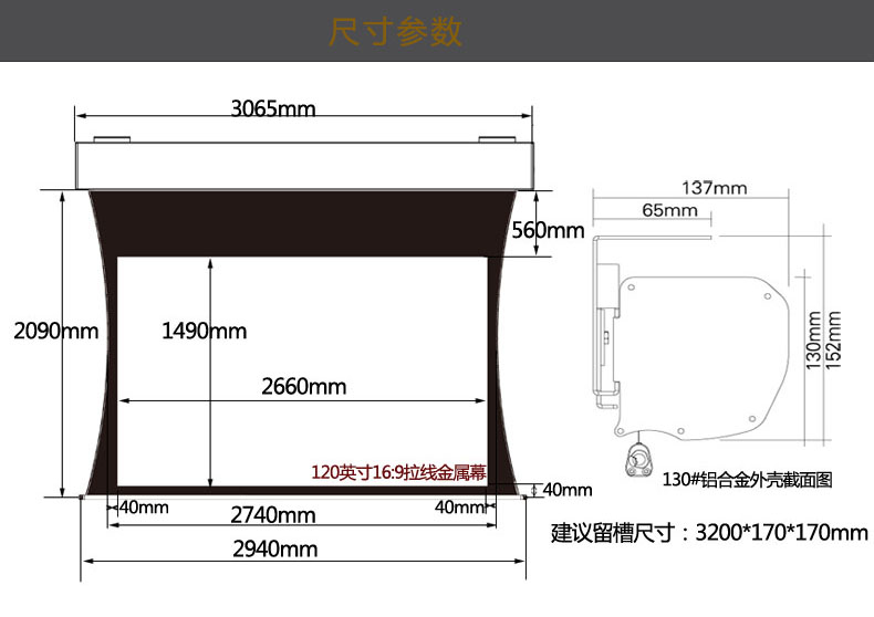 商品名称:Redleaf红叶电动投影仪幕布120寸16:9高清纳米3D4K电动拉线金属幕