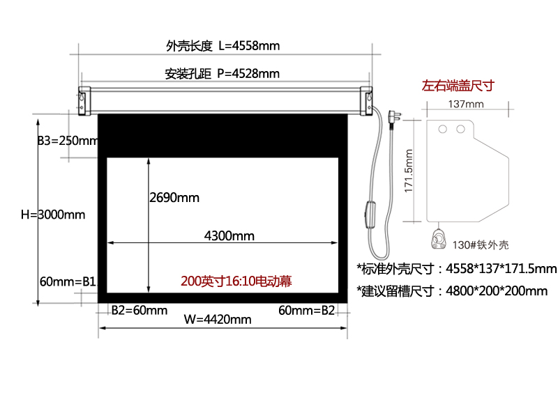 200寸16:10电动幕