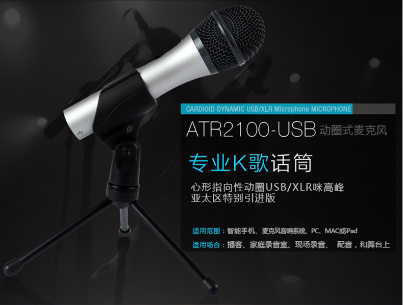 Audio Technica/铁三角 ATR2100 USB手机电脑K歌麦克风话筒