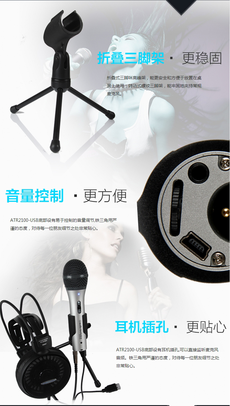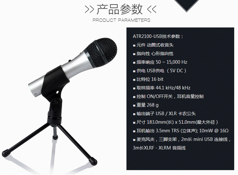 商品名称:Audio Technica/铁三角 ATR2100 USB手机电脑K歌麦克风话筒