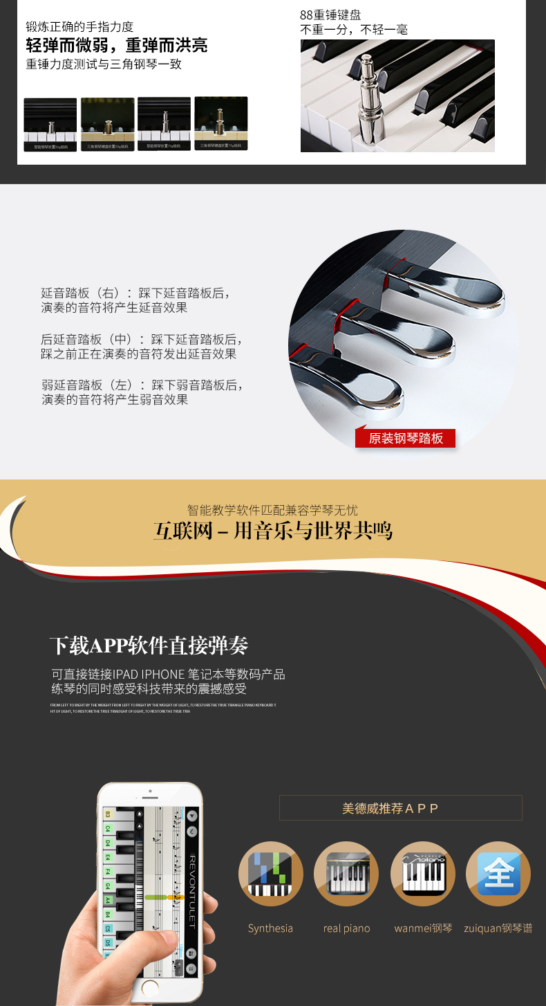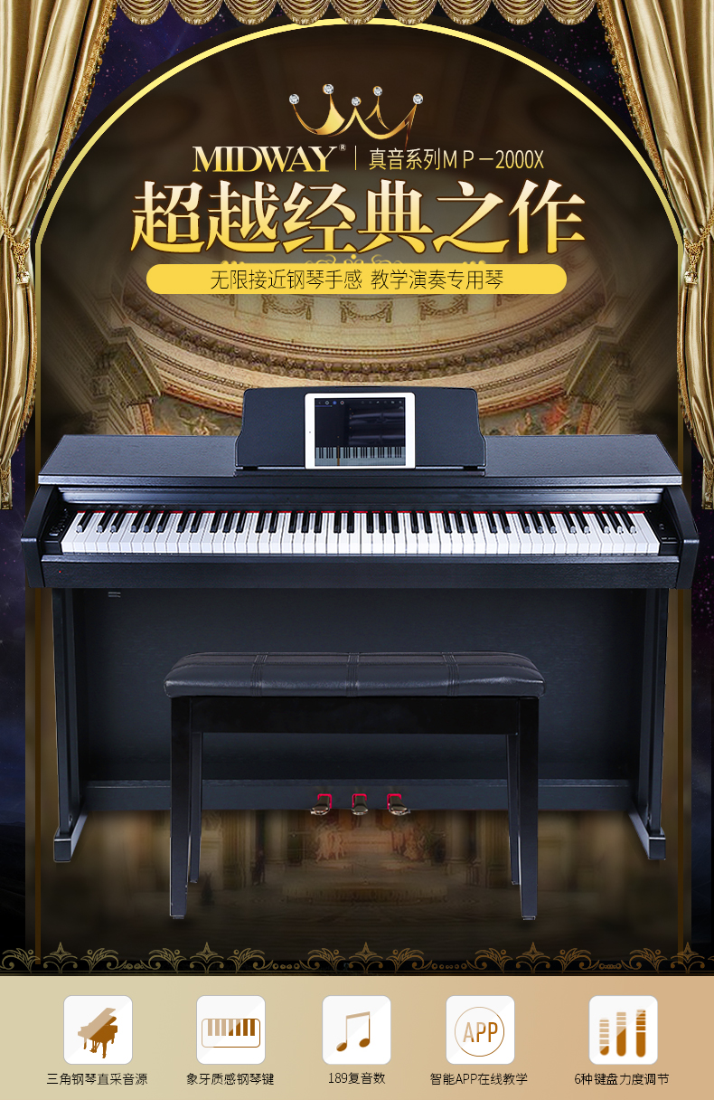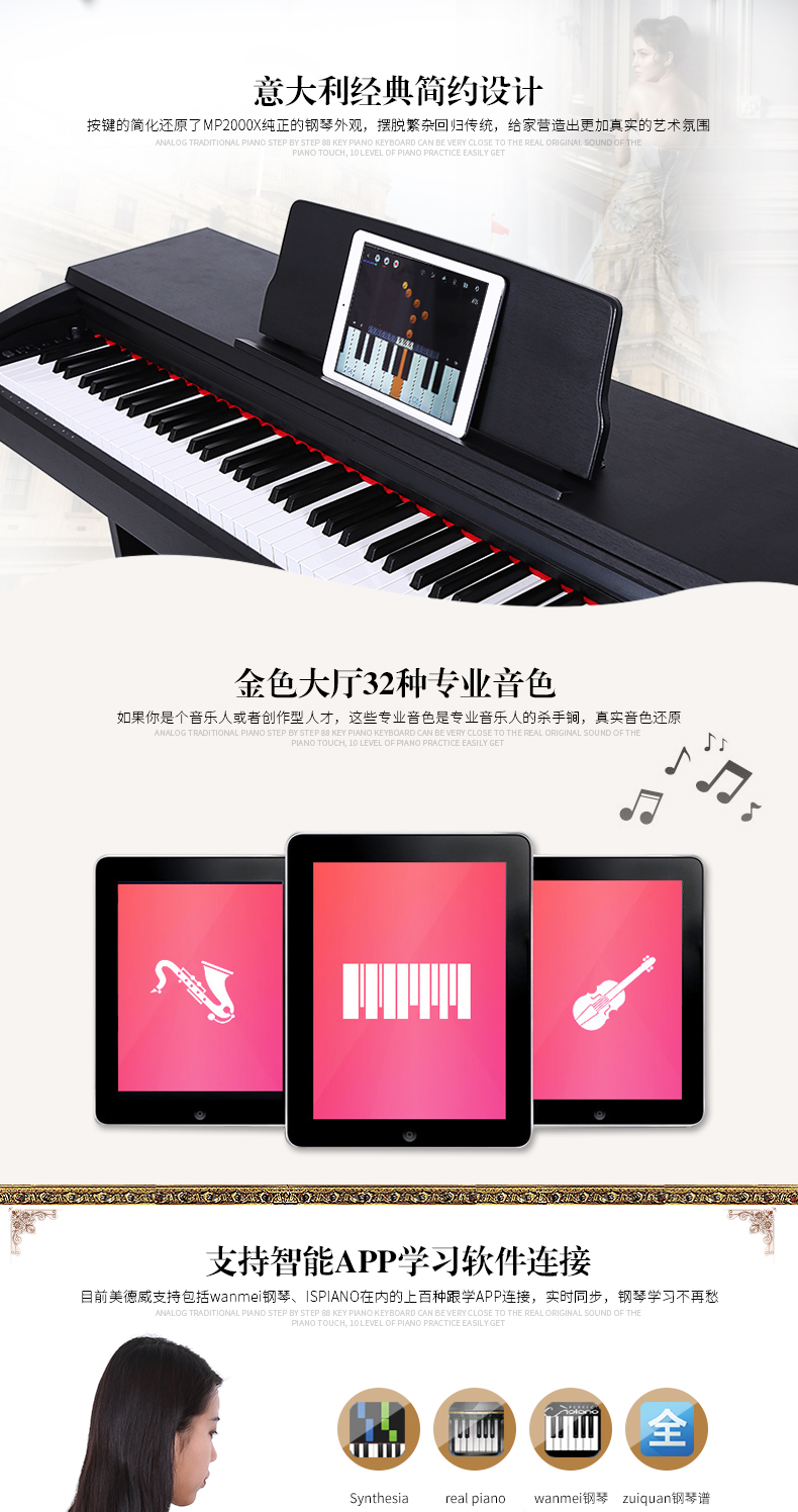商品名称:美德威智能电钢琴 88键重锤高档演奏教学数码电子钢琴钢琴手感