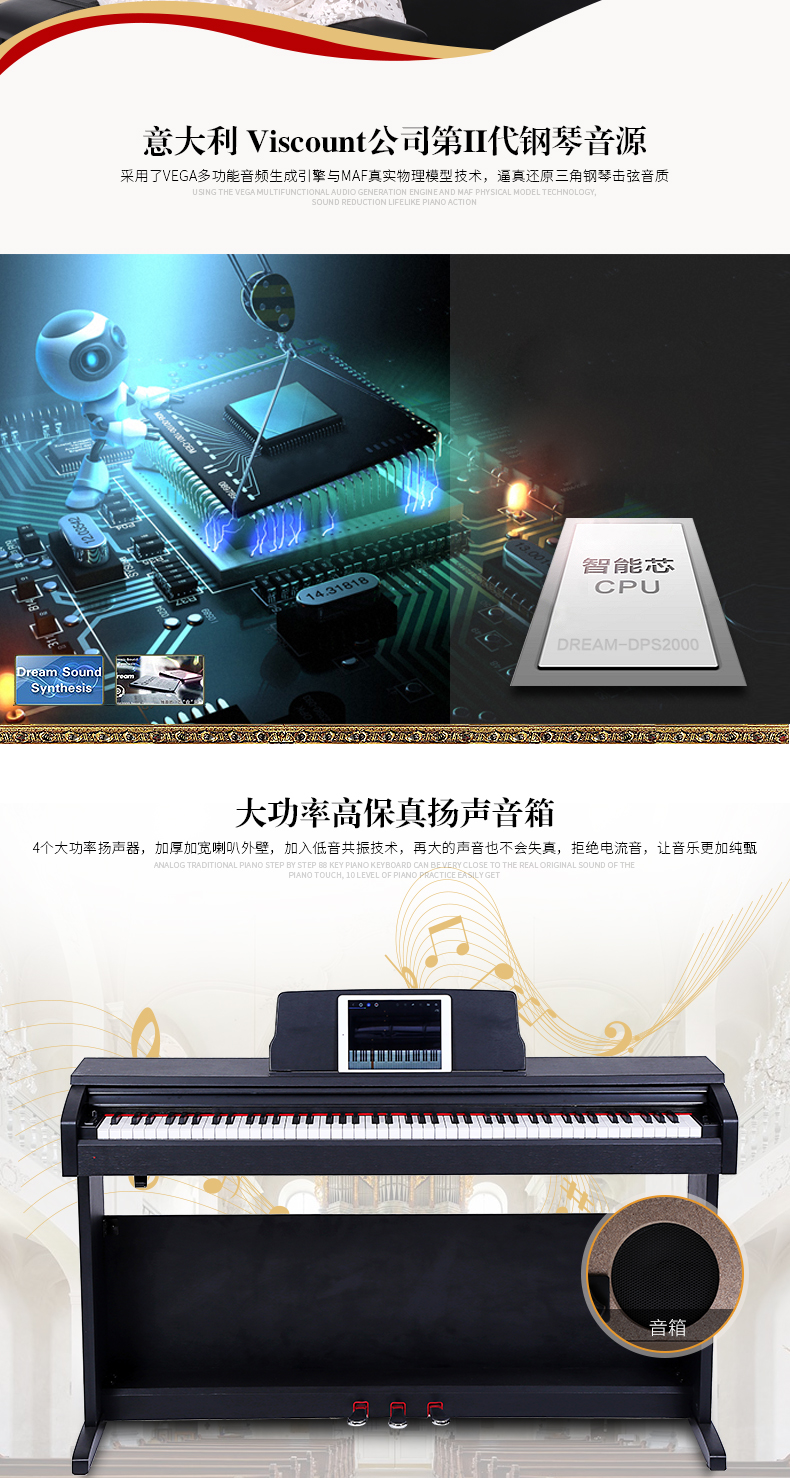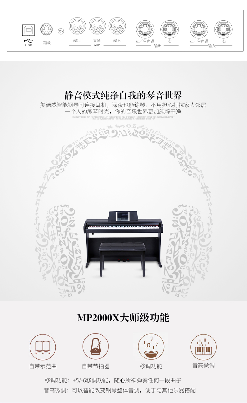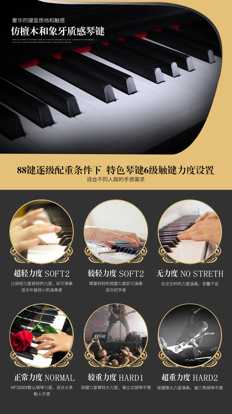 商品名称:美德威智能电钢琴 88键重锤高档演奏教学数码电子钢琴钢琴手感