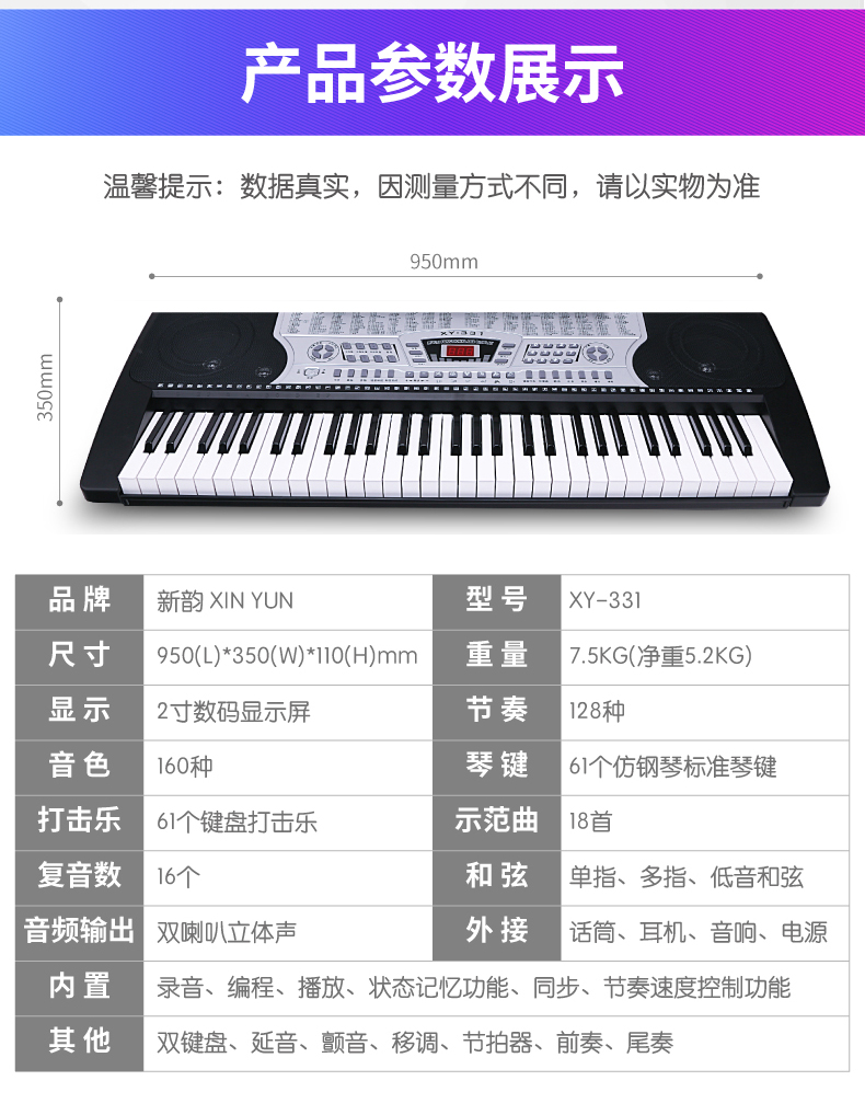 商品名称:新韵331多功能电子琴成人初学者入门儿童钢琴键幼师教学智能乐器