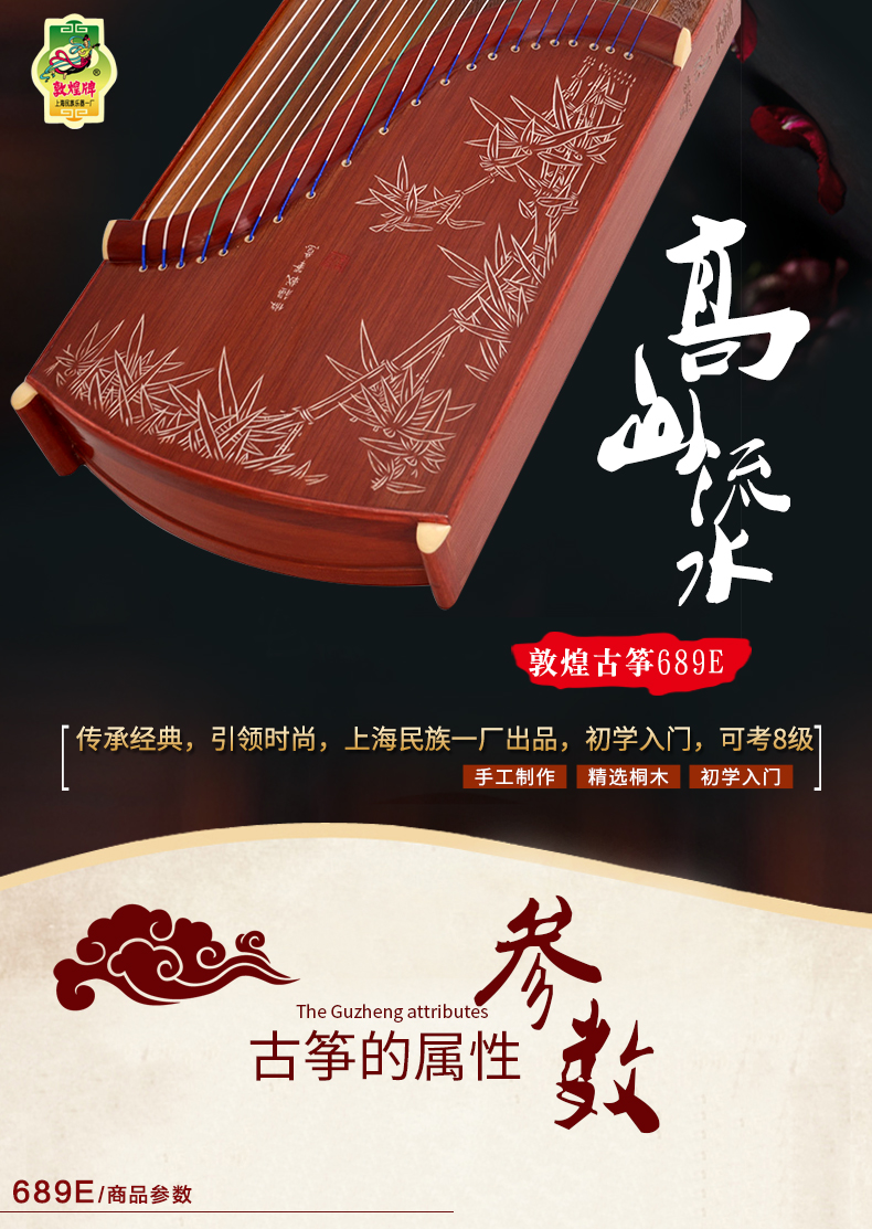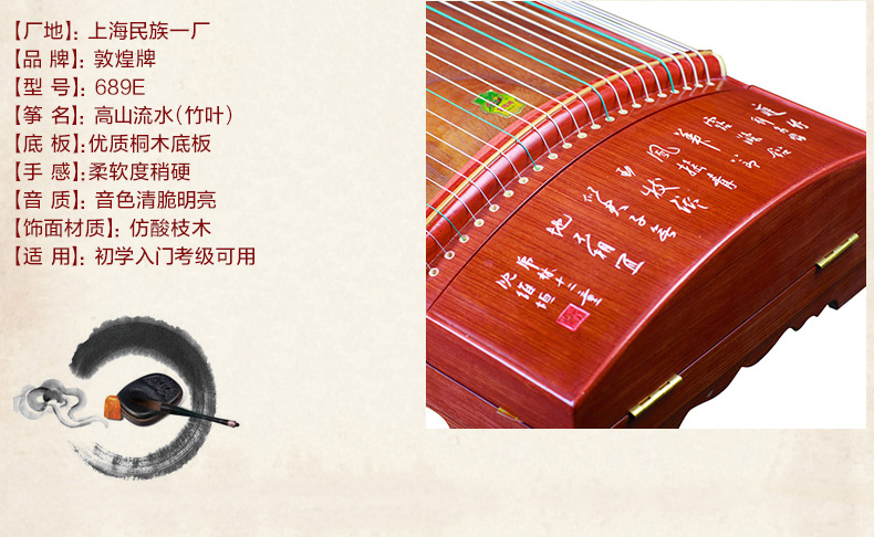 敦煌古筝689E高山流水 白竹叶图案 防酸枝木 敦煌牌古筝 689E官方标配