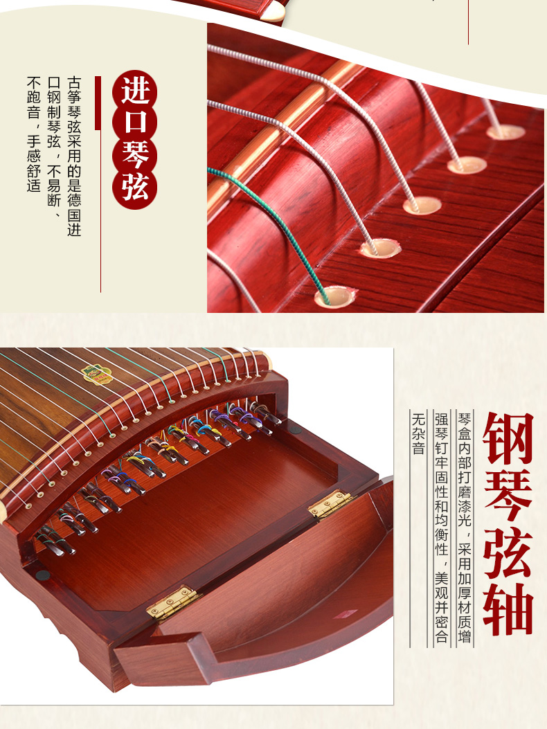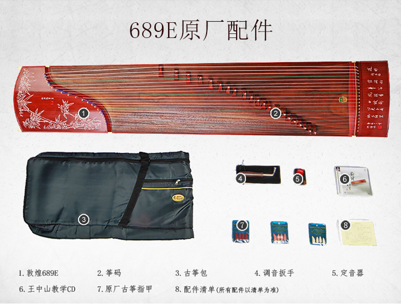 商品名称:敦煌古筝689E高山流水 白竹叶图案 防酸枝木 敦煌牌古筝 689E官方标配