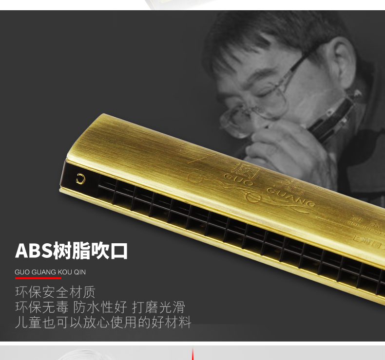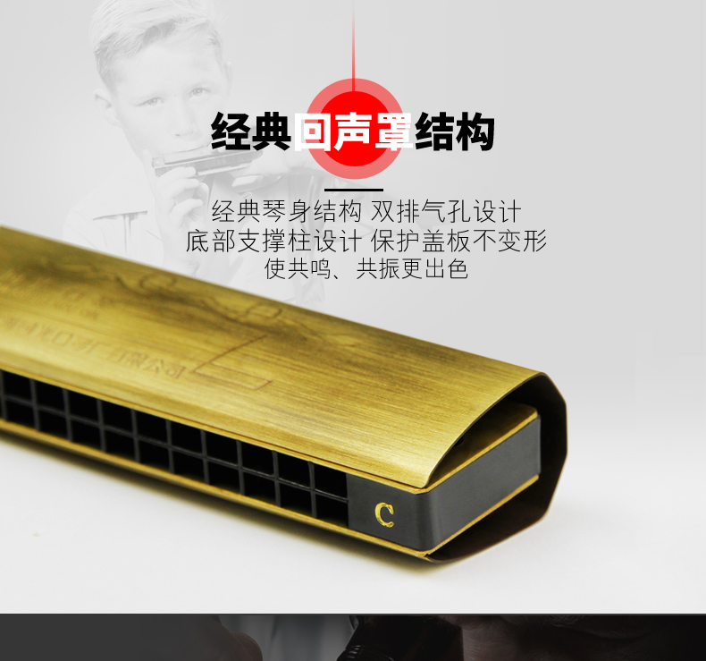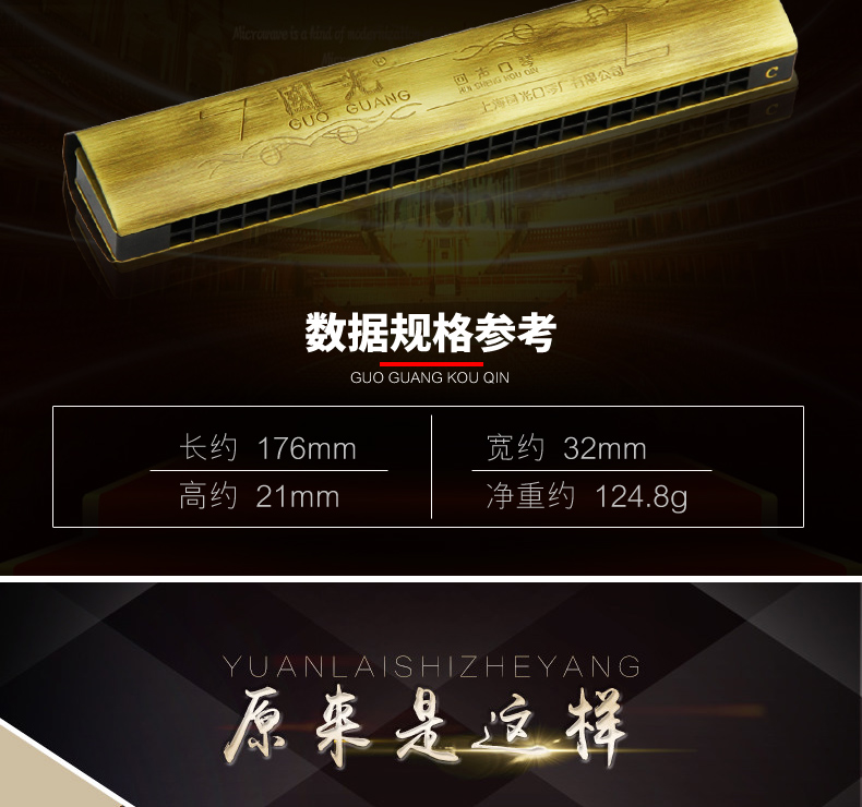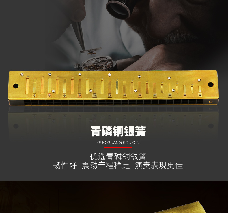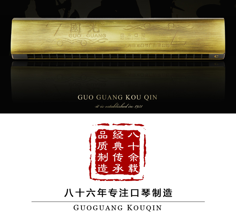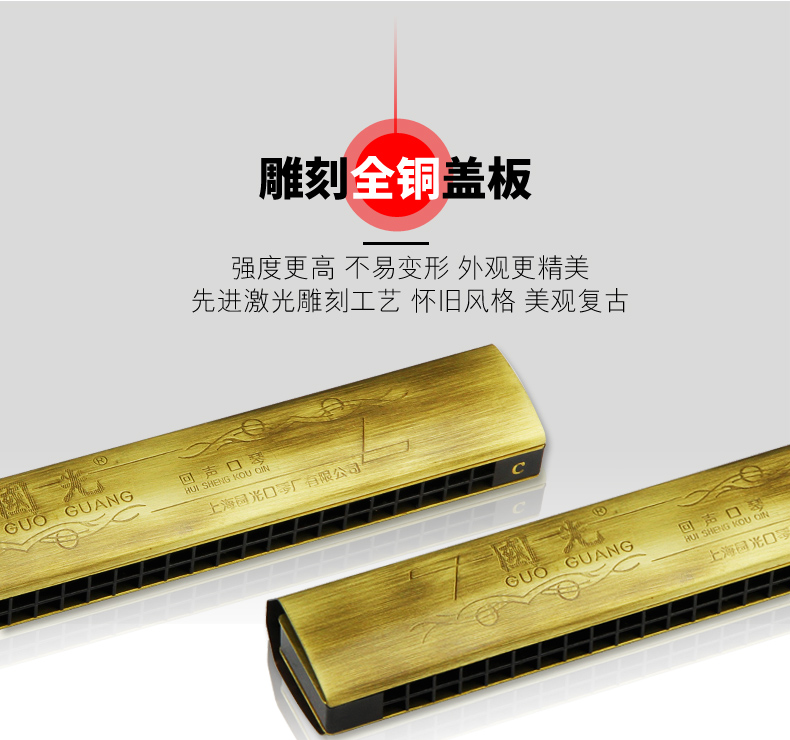 商品名称:上海老牌国光24孔C调古铜色专业演奏回声初学专业口琴