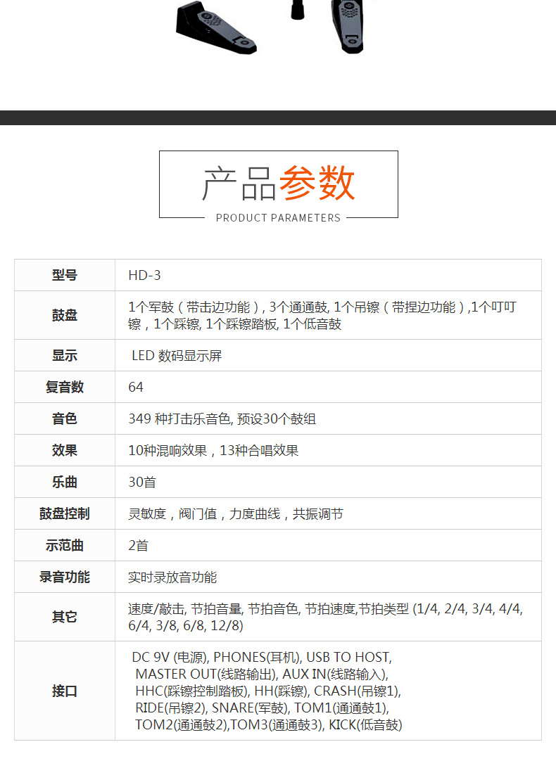 商品名称:送鼓凳鼓棒 吟飞电子鼓HD-3正品儿童成人初学者