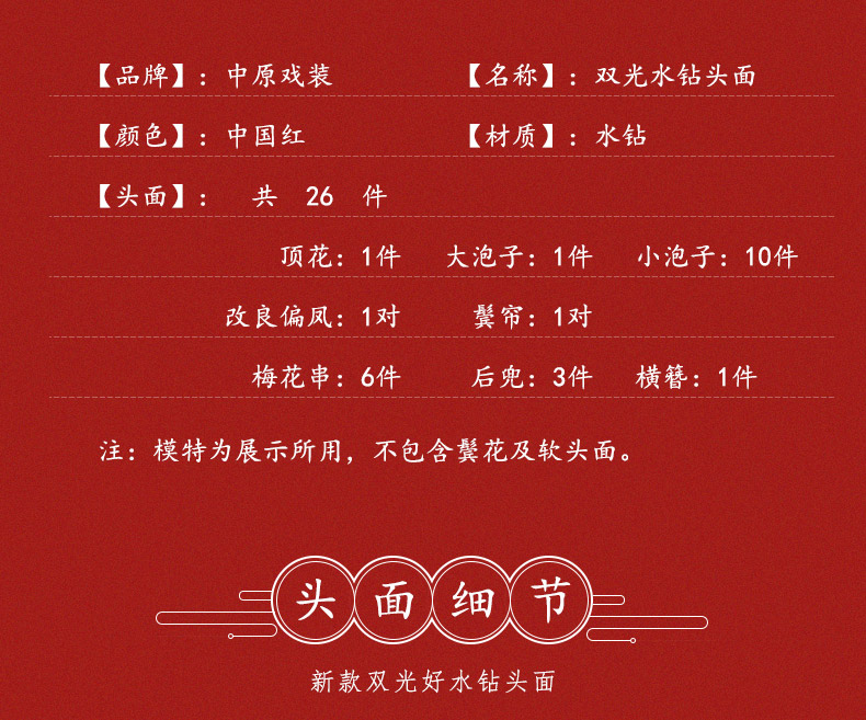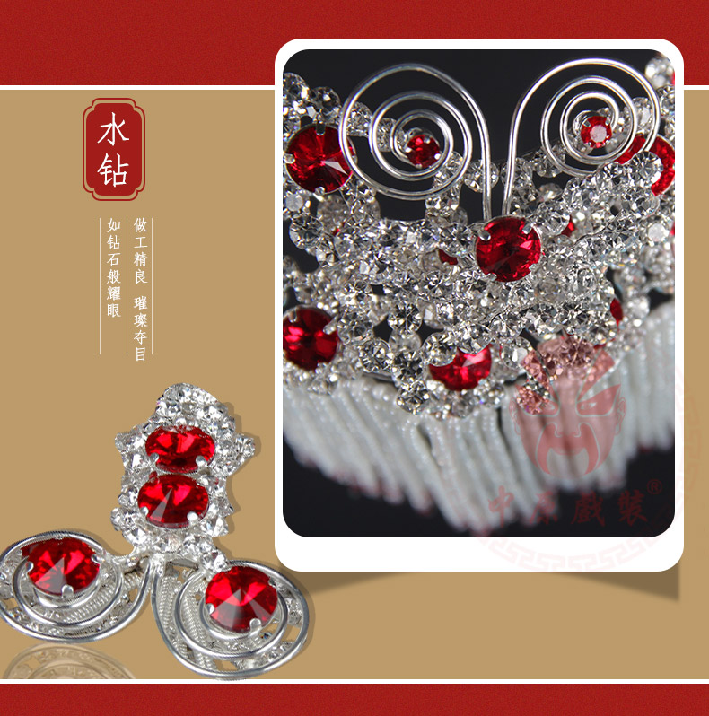 商品名称:中原戏装戏曲新款双光水钻头面全套青衣花旦小姐古装头饰旦角化妆