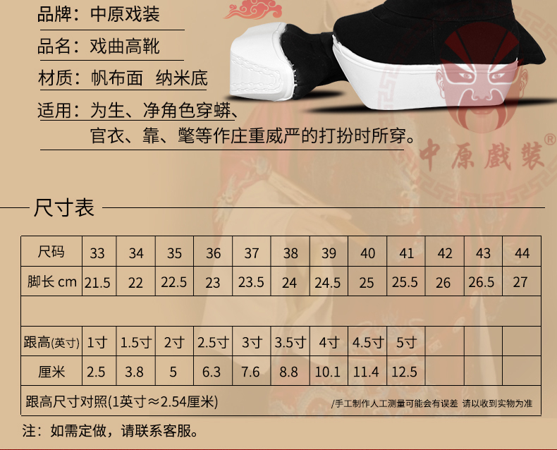 商品名称:中原戏装戏曲高靴纳米胶底小生武生厚底靴朝靴官靴京剧戏剧鞋靴子